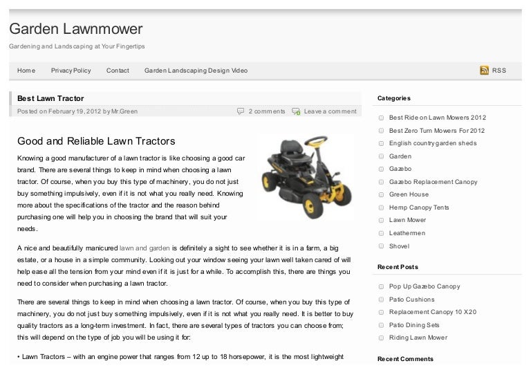 The 15 Best Garden Tractor Review in 2022 Top picks. Cheapest: EGO Power+ LM2101. The EGO Power+ LM2101 21-Inch 56-Volt Lithium-ion Cordless Lawn Mower is a powerful and versatile tool that will make short work of any lawn. With up to 45 minutes of run time on a single charge, this mower is ideal for large or small yards.