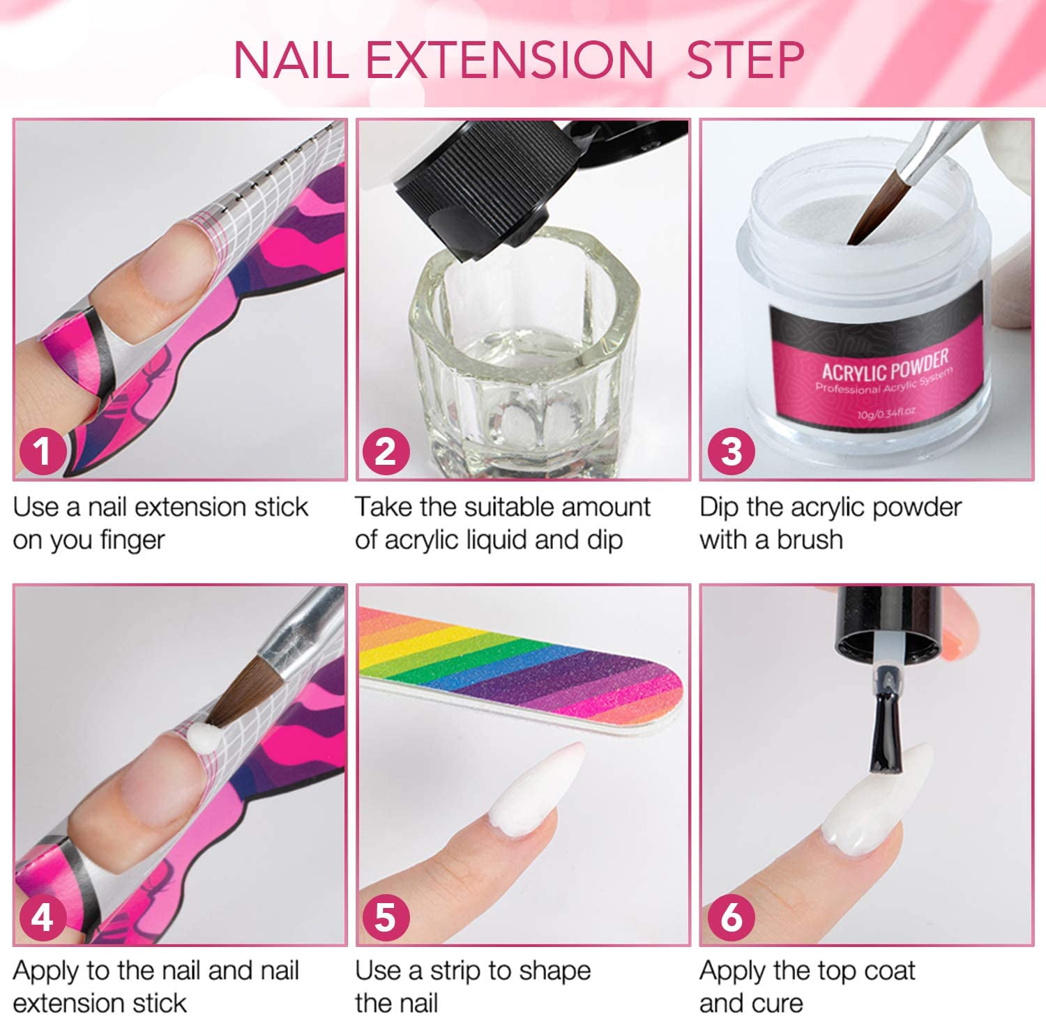 › Cooserry-115-Acrylic-Nail-Kit › dpAmazon.com: Cooserry 115 In 1 Acrylic Nail Kit - 48 Colors of ... The acrylic liquid monomer has smell somewhat. A ventilated place is recommended to reduce the smell. After drying for 5-8 mins, you can use the file to shape your acrylic nails as you like. Brush Care: Make sure to clean the acrylic brush with acrylic monomer after each use, to prevent the acrylic powder on the brush from clumping. › Morovan-Acrylic-Powder-SetAmazon.com: Morovan Acrylic Powder Set - 12 Colors Acrylic ... The acrylic powder set can be used for acrylic nail art, nail tips, French nail art, DIY, etc. High quality and suitability: The acrylic nails powder set is a non-bubble polymer. Not easy to crack, easy to use, with Morovan acrylic nail liquid, This acrylic nail powder drying time is 6-12 minutes. › AZUREBEAUTY-Polish-Orange-ColorAmazon.com: 29 Pcs Dip Powder Nail Kit Starter, AZUREBEAUTY ... About this item . What You Get: 20 X Gorgeous colors nail dip powder (0.34 oz. each), 4 X Dip liquids essential set (0.34 oz. each), 5 X Additional professional dip manicure tool (with nail brush/cuticle pusher/nail file/2*dip powder gel brush replacement), User Manual Quick Start Guide, AZUREBEAUTY home dip powder nail kit can get nail art salon-quality equipment for small fee.