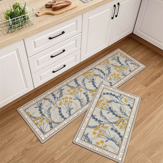 Pluokvzr Kitchen Mats Rug Set Kitchen Floor Mat and Rug Waterproof Heavy Duty Kitchen Sink Mat for Home Farmhouse Indoor Kitchen, Office, Laundry Room ...