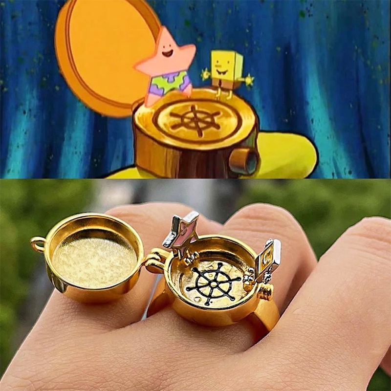 SpongeBob Ring Anime Women's Men's Bff Best Friend Ring Opening Adjustable Patrick Star Rings Trend Finger Jewelry Birthday Gift