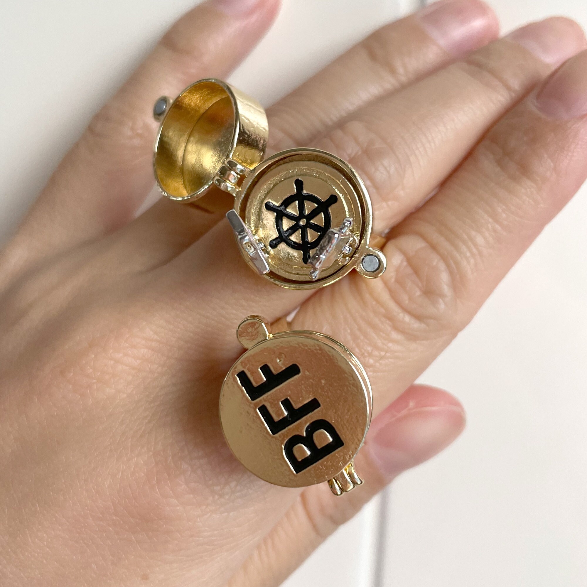 Best Friends Forever Ring, Openable Locket BFF Rings, 18K Gold Anime ... Cute Design - BFF ring represents the longevity of friendship and companionship. The ring locket is openable and the two anime images represent you and your best friend, making a great gift for your best friend to show your affection. Quality Material - Made of high quality material, 18K gold plated, with adjustable ring opening, the ring is small and portable, skin-friendly, which supports ...
